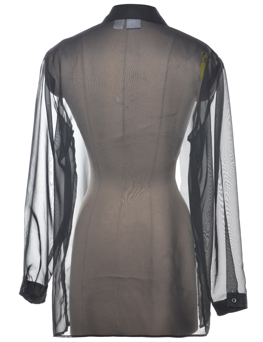 Long sleeved shirt with sheer effect. Comes in black with a classic collar.