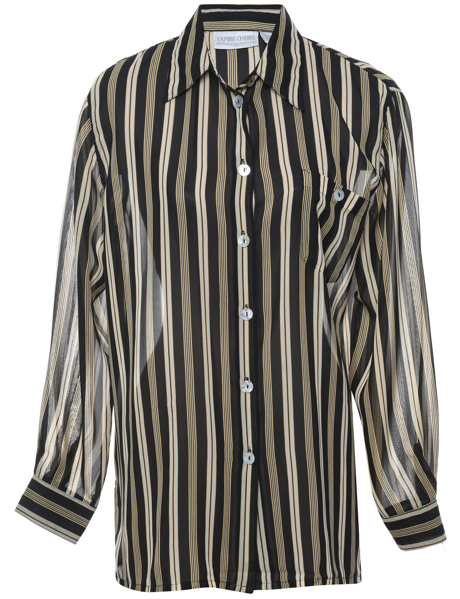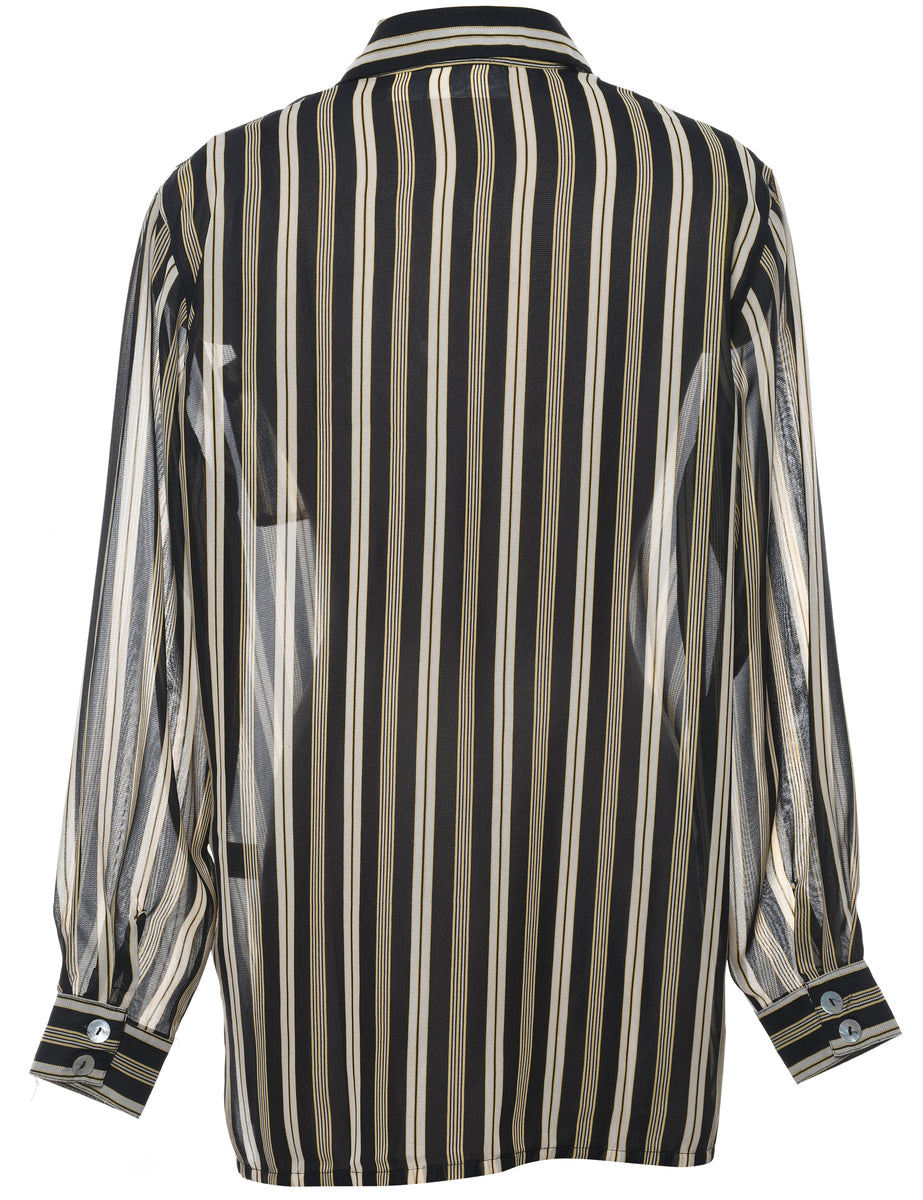 Long sleeved shirt with striped pattern. Comes in black with a classic collar.