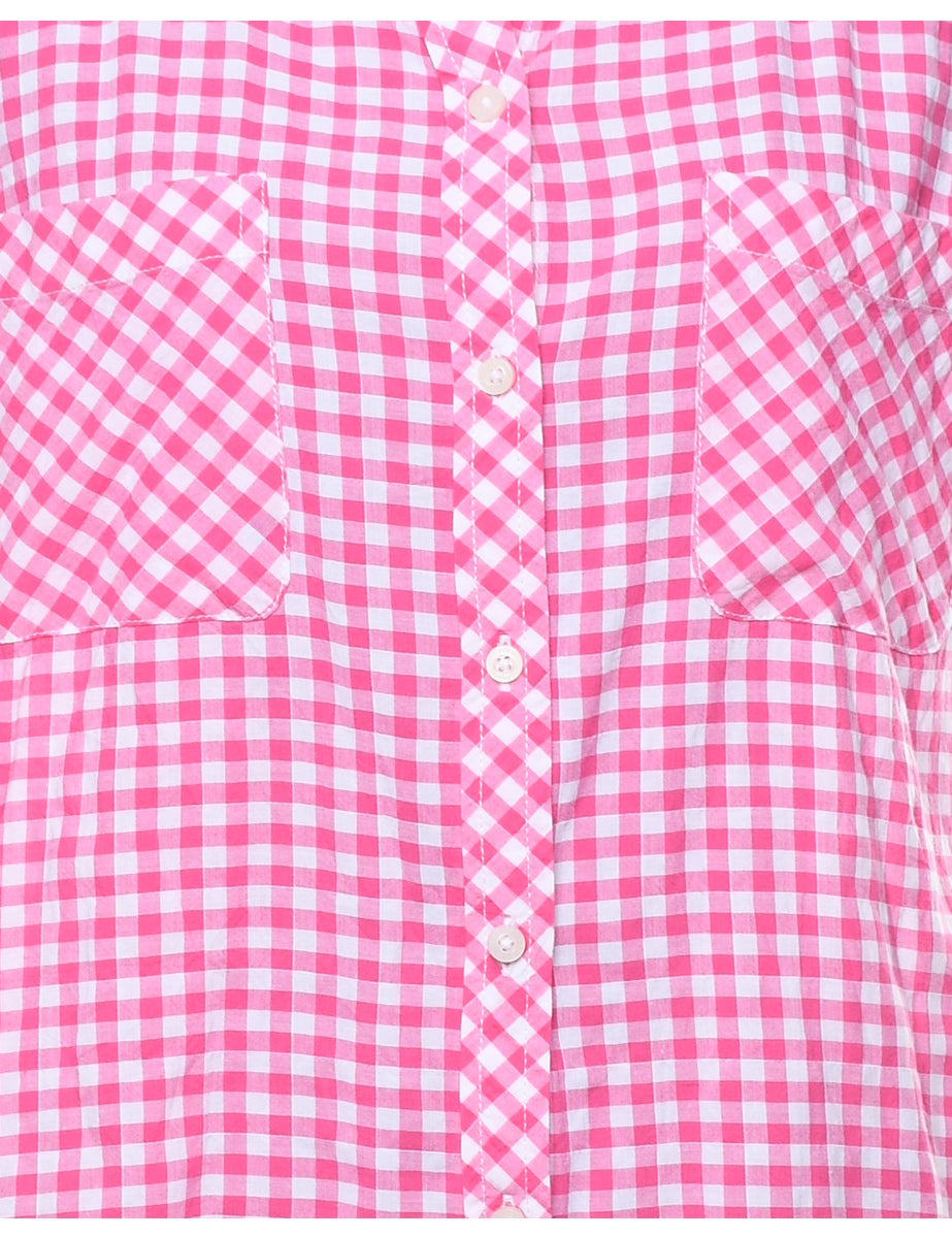 Short sleeve shirt in pink with gingham pattern, a classic collar.