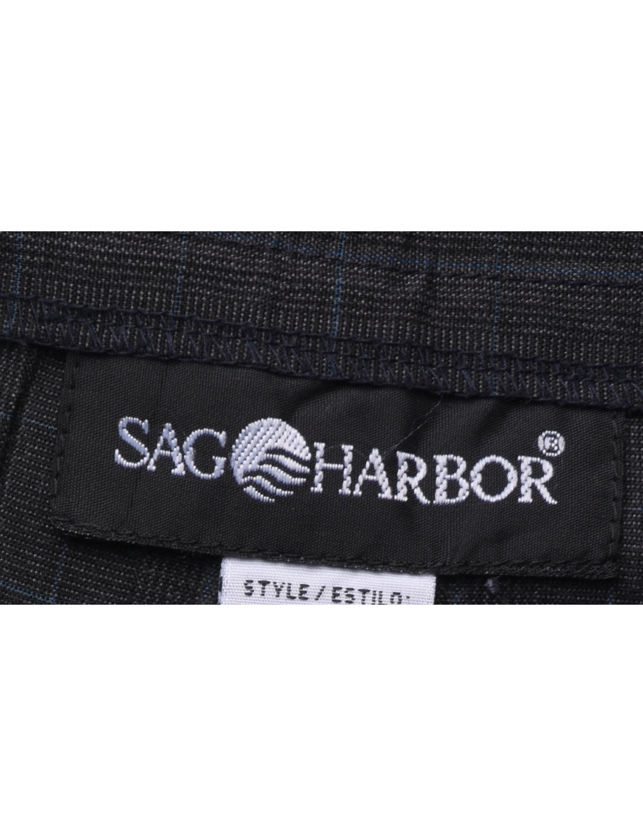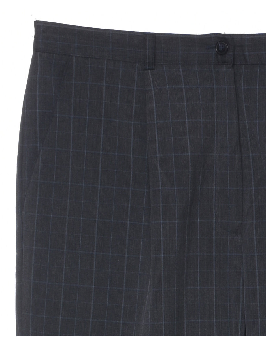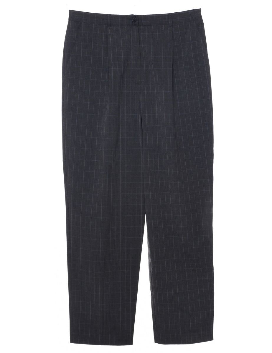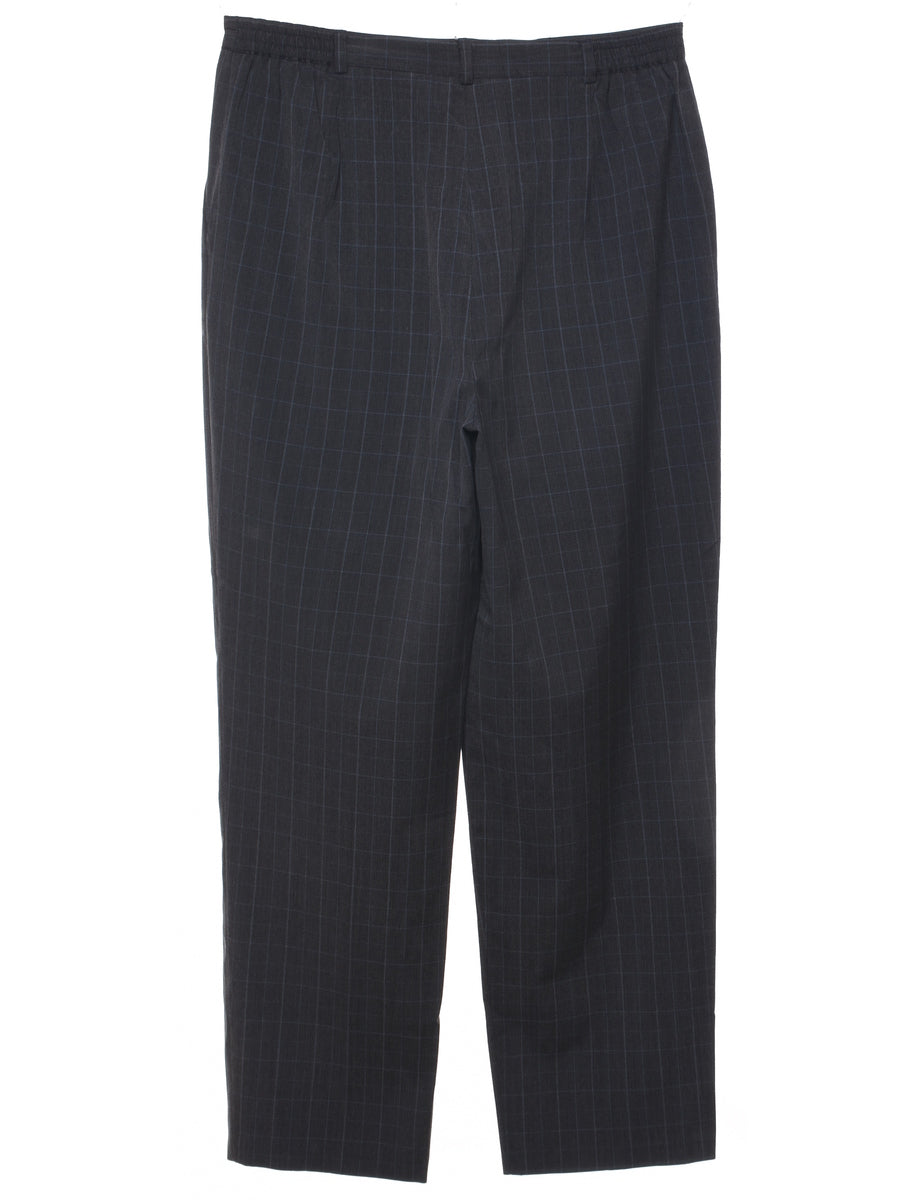 Checked trousers in dark grey with pleat detail and multiple pockets.