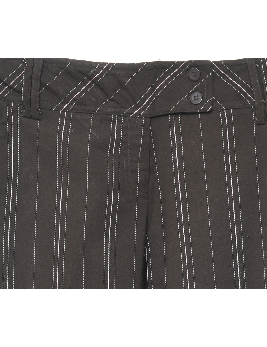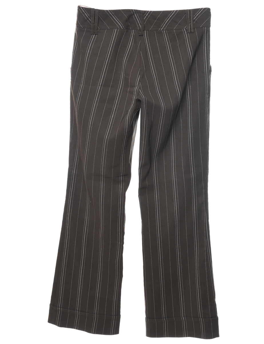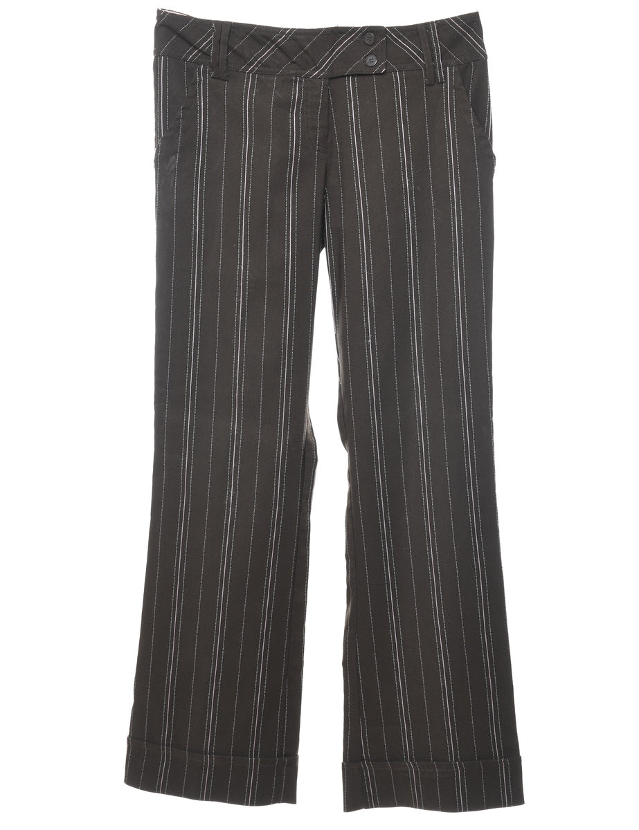 Vintage Dark Brown & White Pinstriped Y2K Trousers - W32 L33