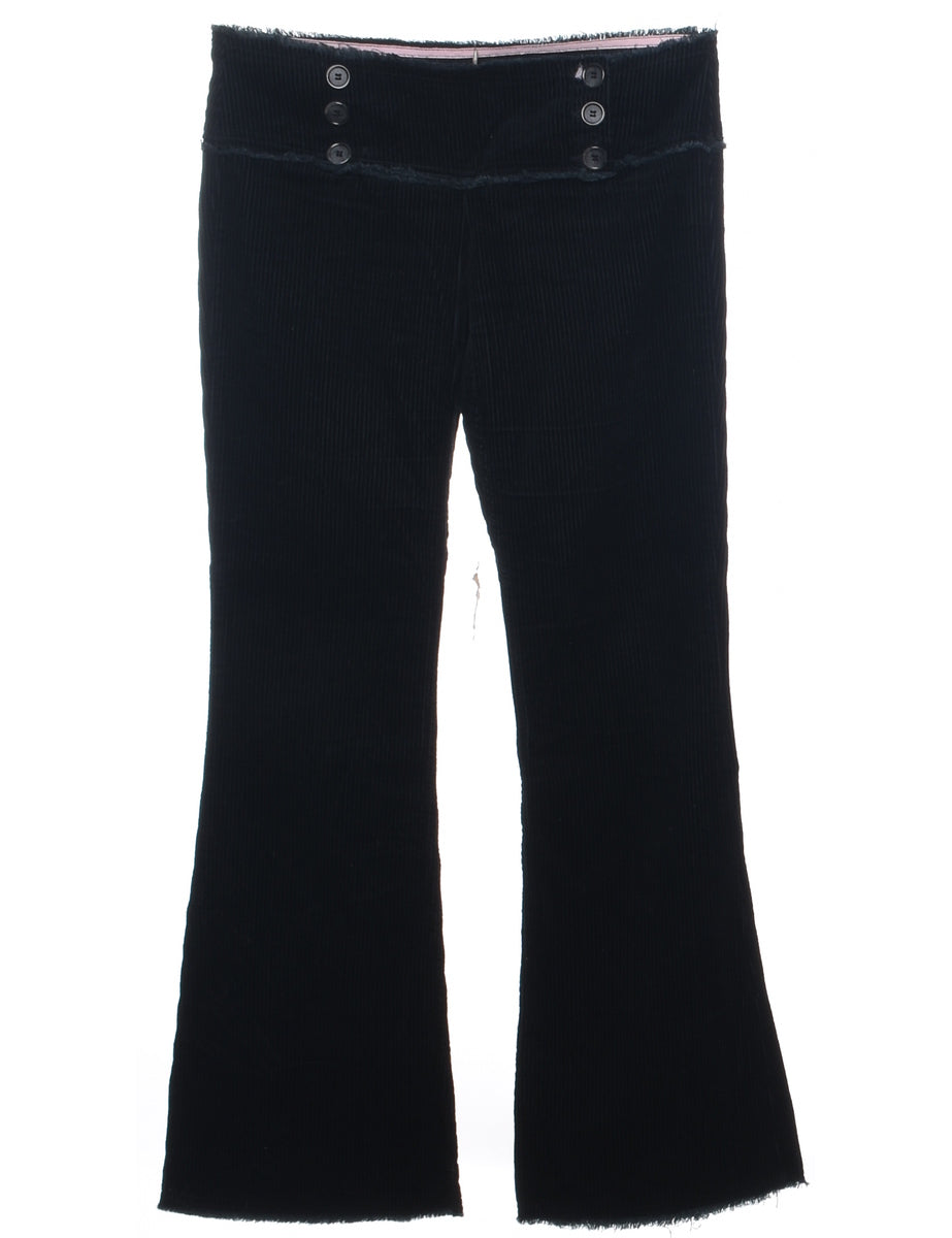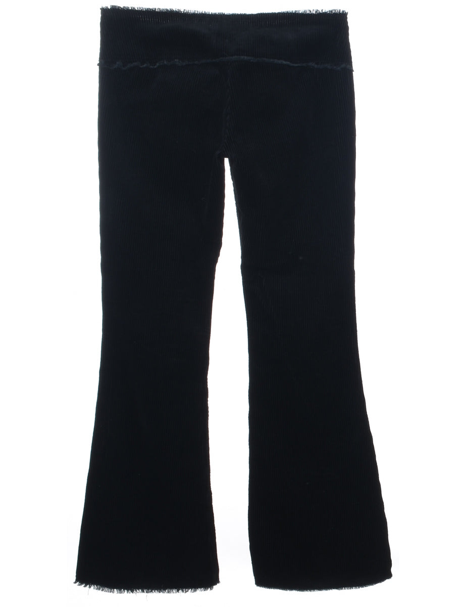 Flared leg trousers with corduroy fabric comes in black with a frayed hem.