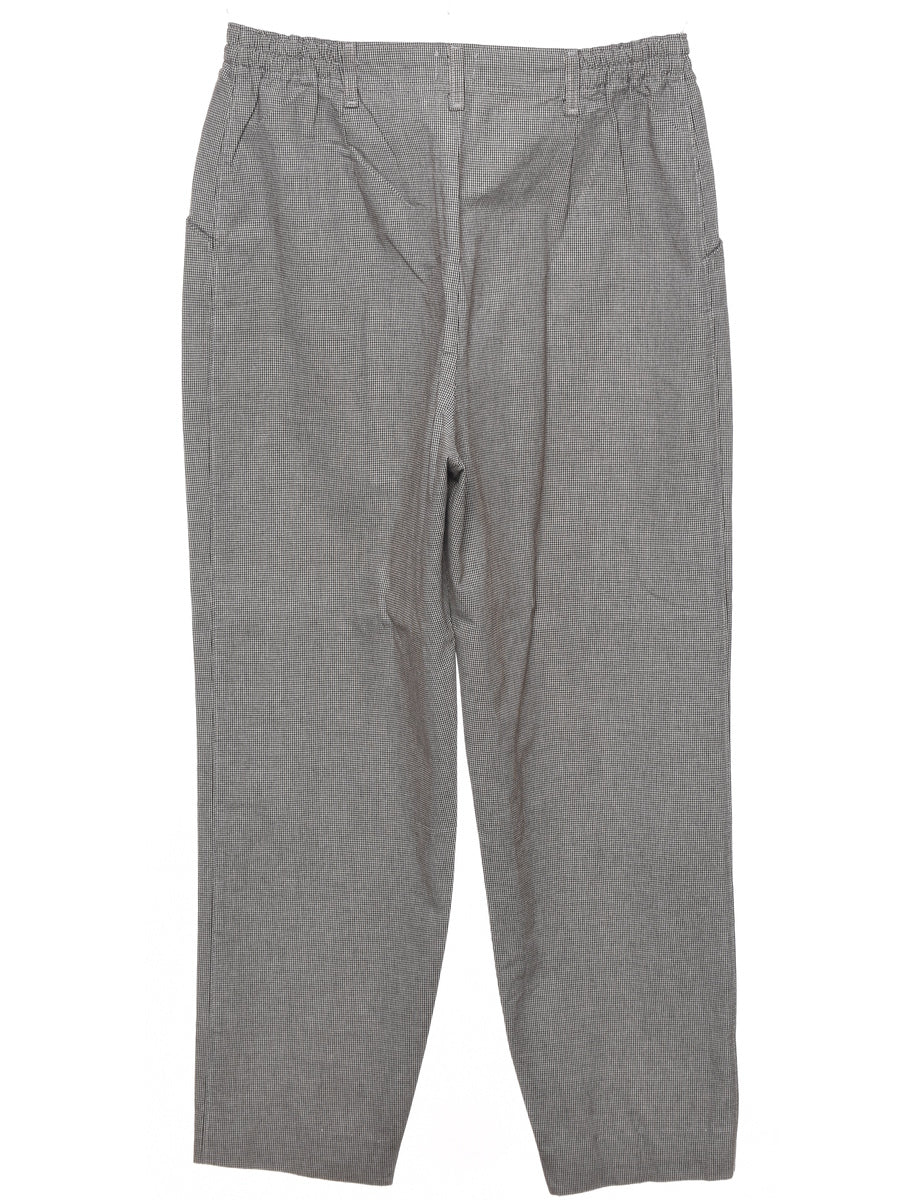 Dogtooth grey trousers with belt loops and multiple pockets.
