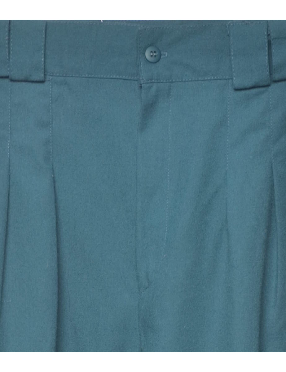 High waist trousers in teal with pleat detail and multiple pockets.