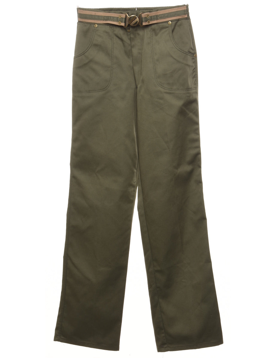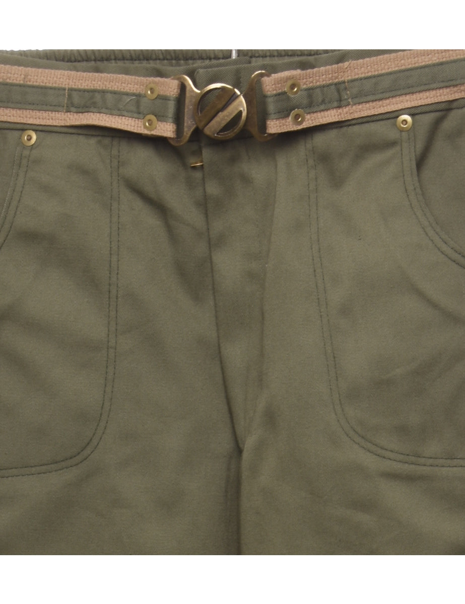 Classic trousers. Comes in olive green with multiple pockets and a belt.