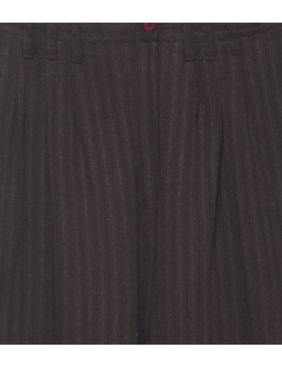 Tapered trousers with striped pattern. Comes in dark brown with pleat detail and multiple pockets.