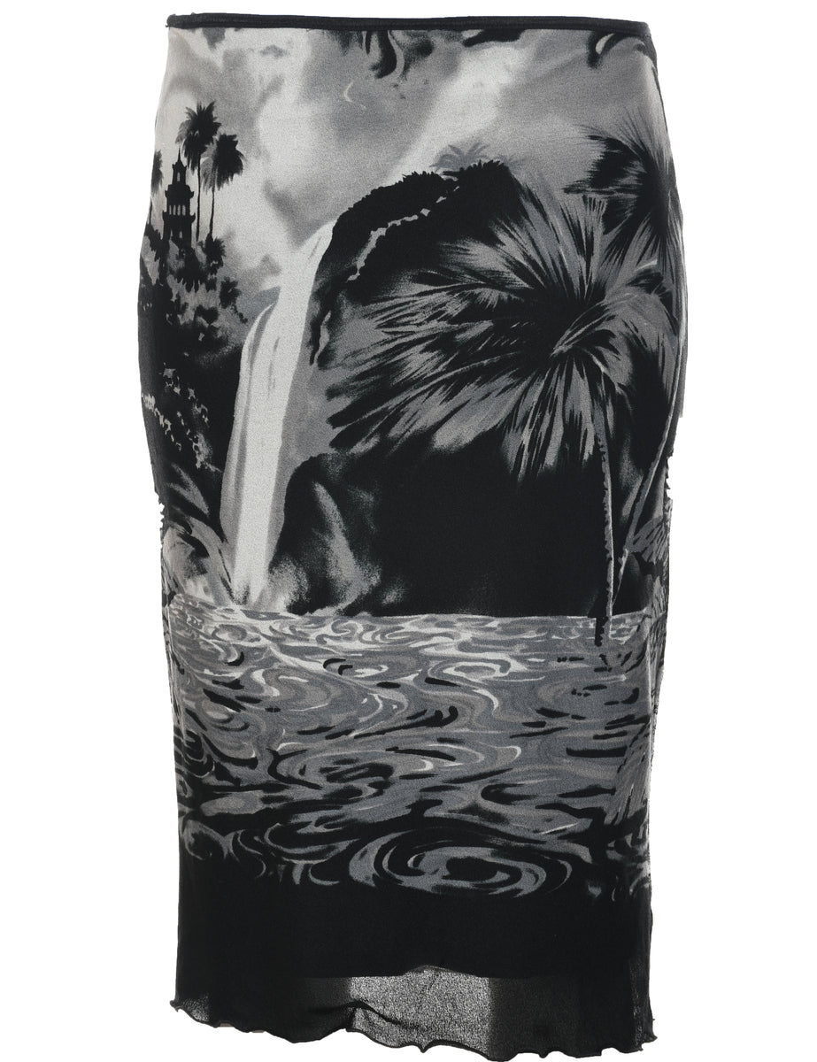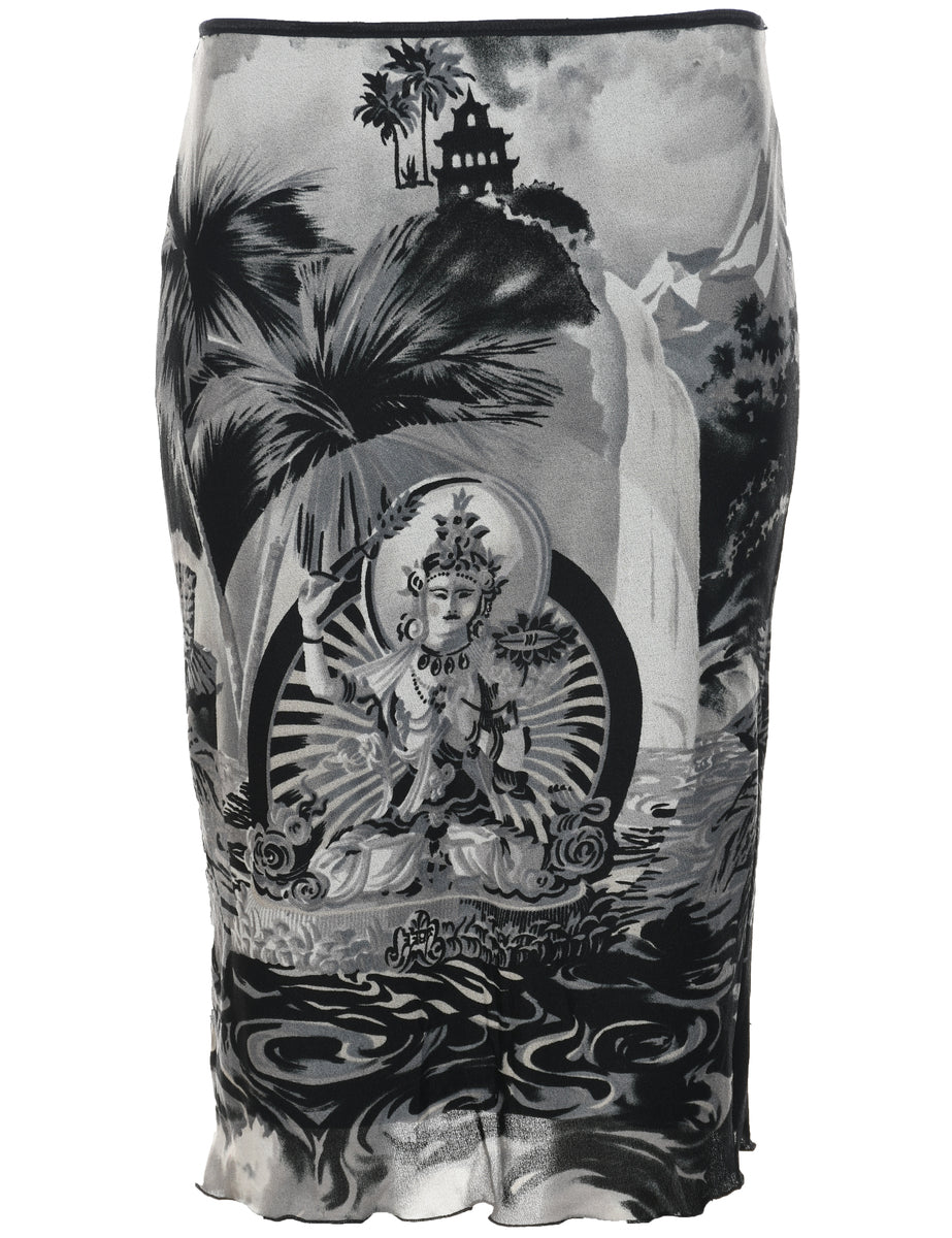 Vintage Abstract Print Pencil Skirt - S