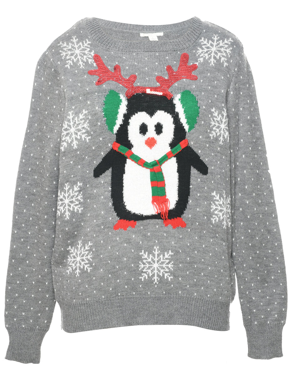 Vintage Nordic Print Penguin Christmas Jumper - L