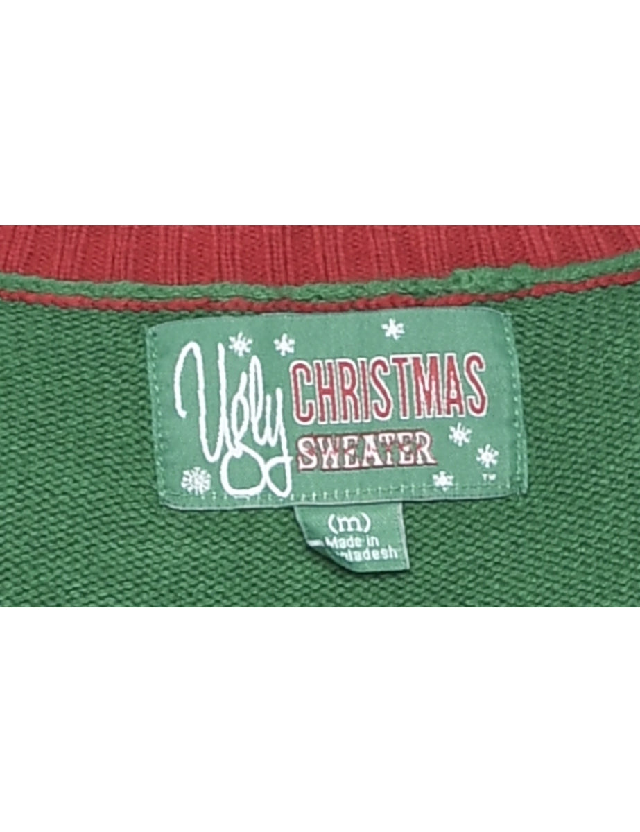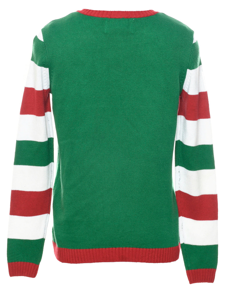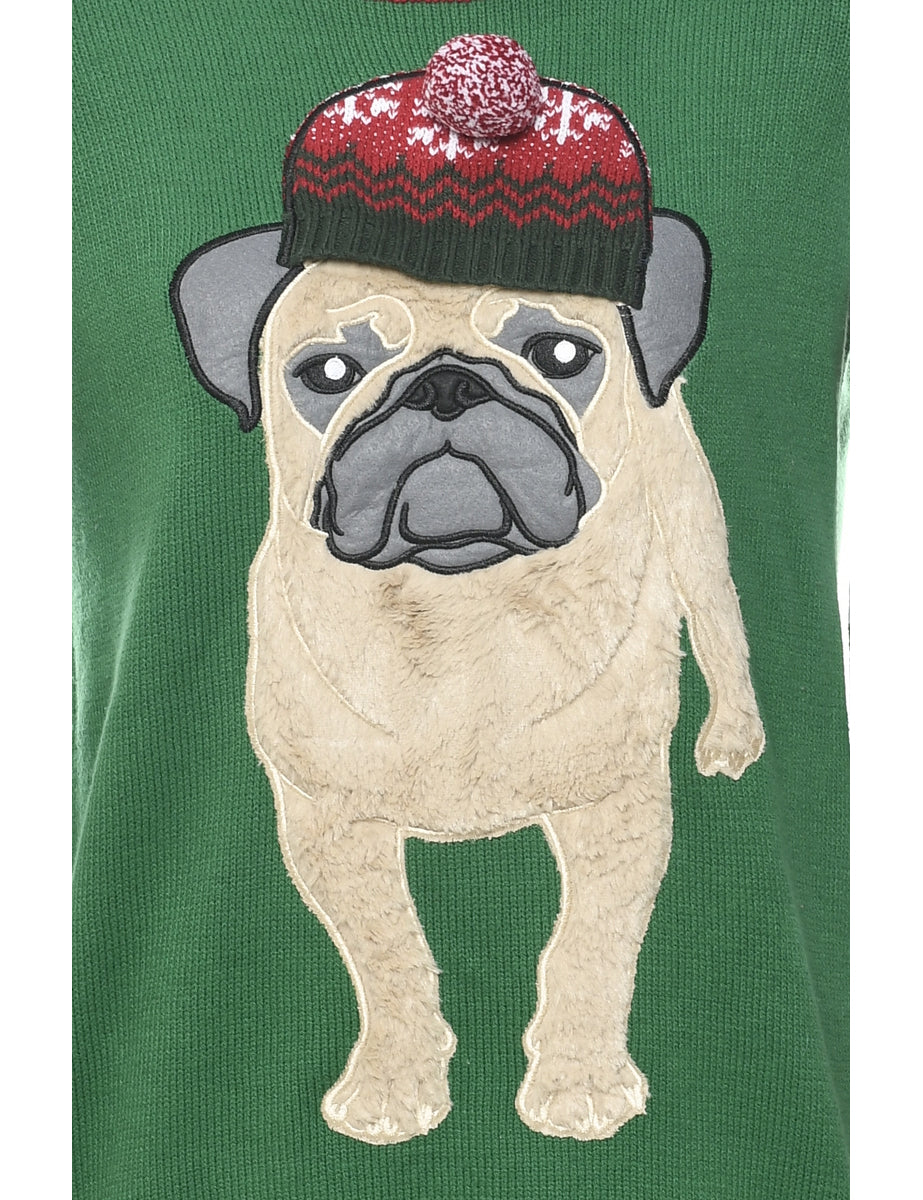 Vintage Pug Patchwork Dark Green Christmas Jumper - M