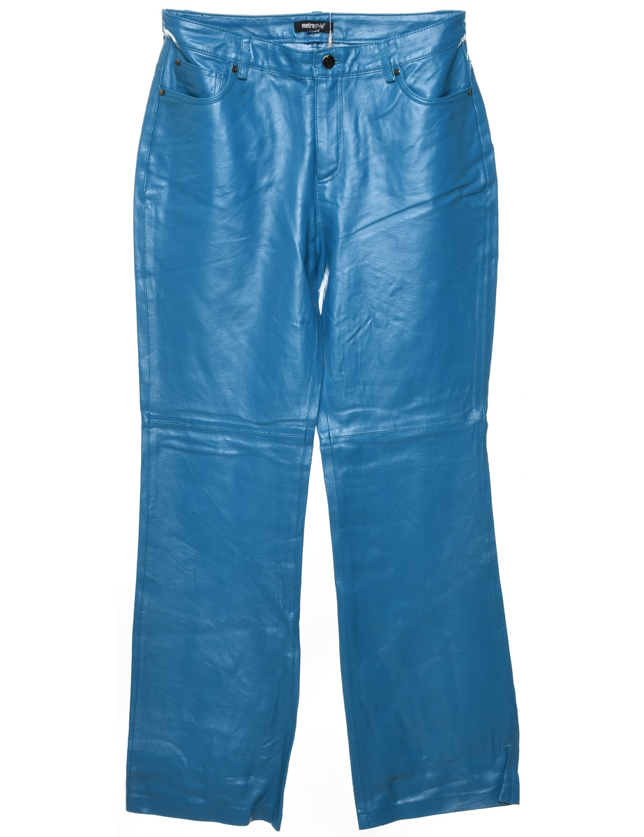 Y2K Vintage Blue Leather Trousers - W30 L32