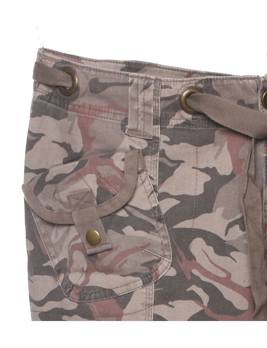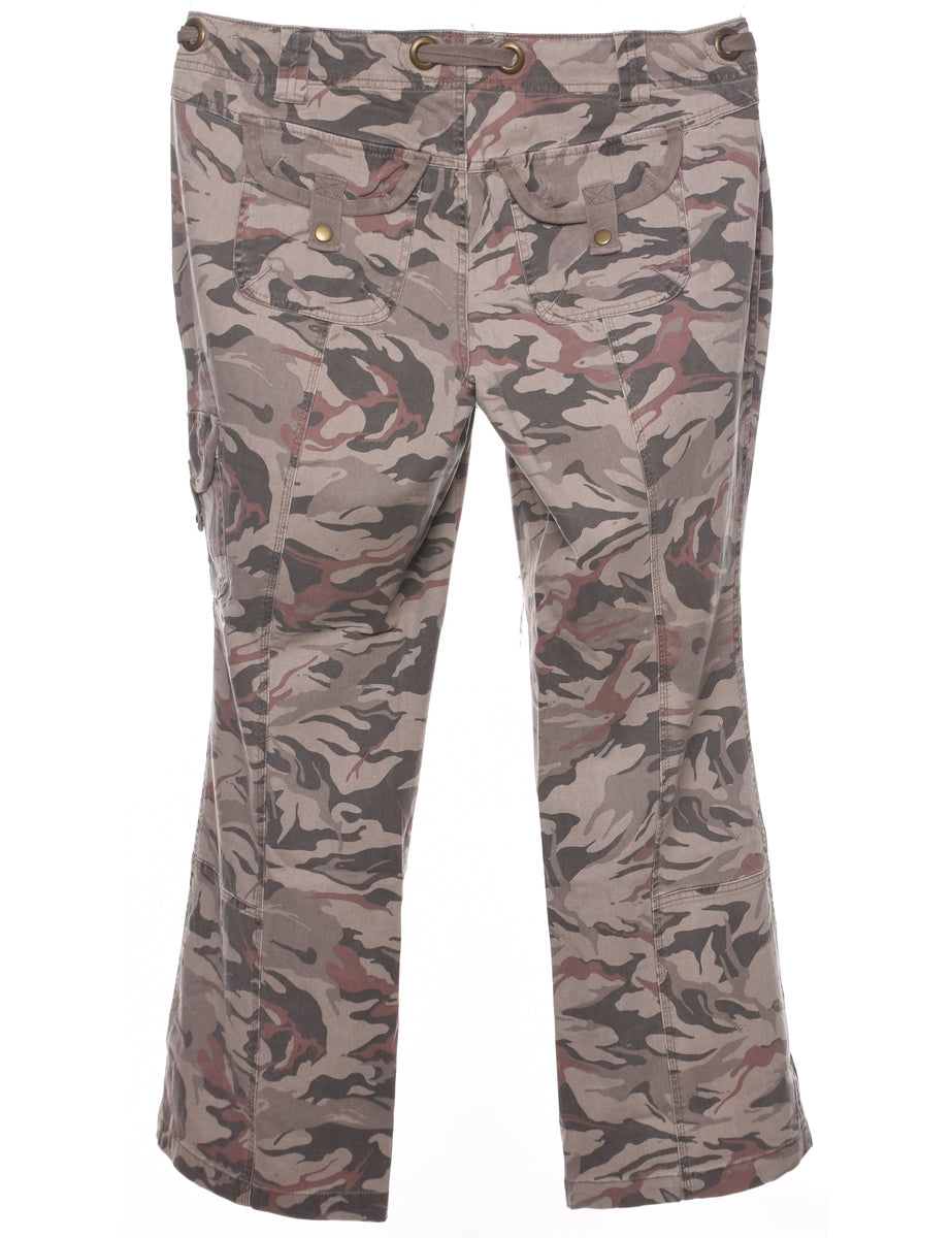 Vintage Camouflage Print Y2K Low Rise Trousers - W36 L31