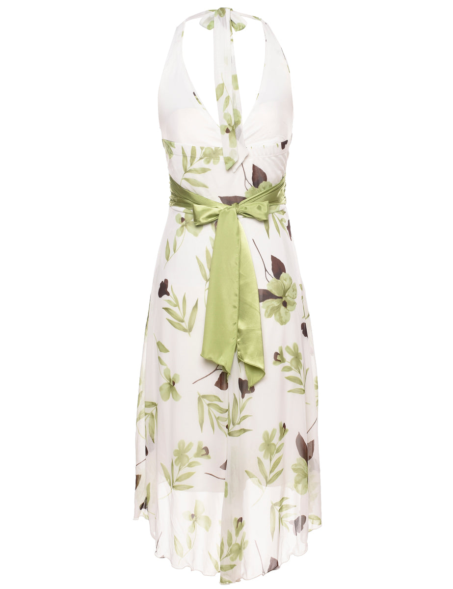 Vintage Floral Print Y2K Halter Dress - S