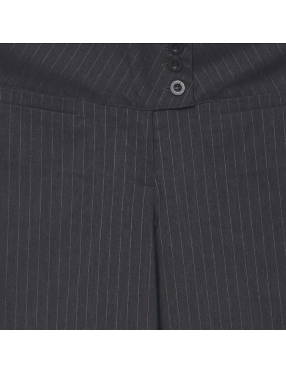 Flared leg trousers with pinstriped comes in dark grey with belt loops.