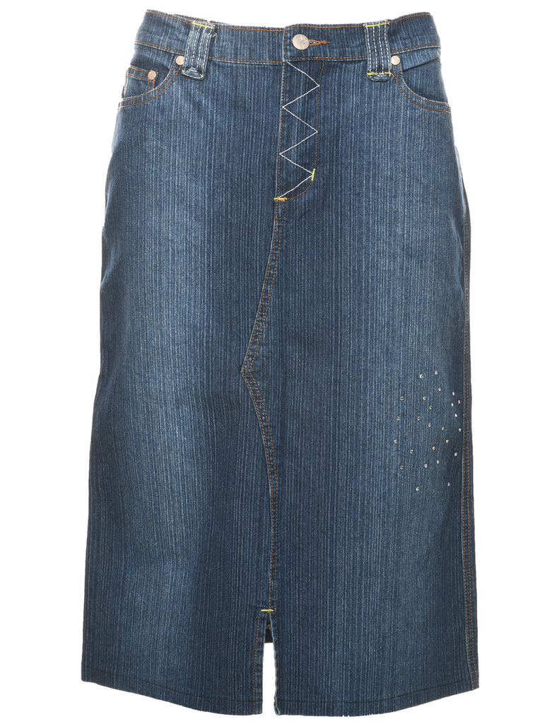 Vintage Stone Wash Y2K Denim Midi Skirt - L