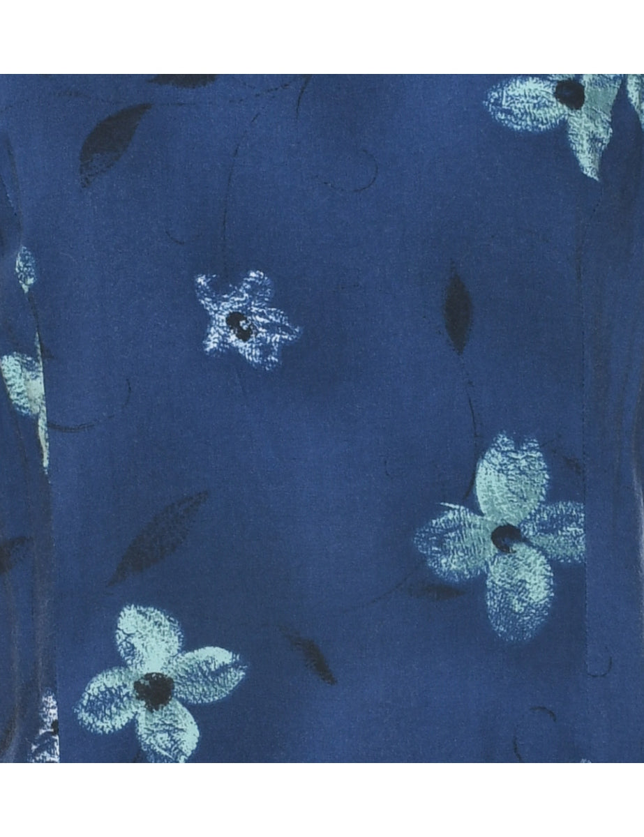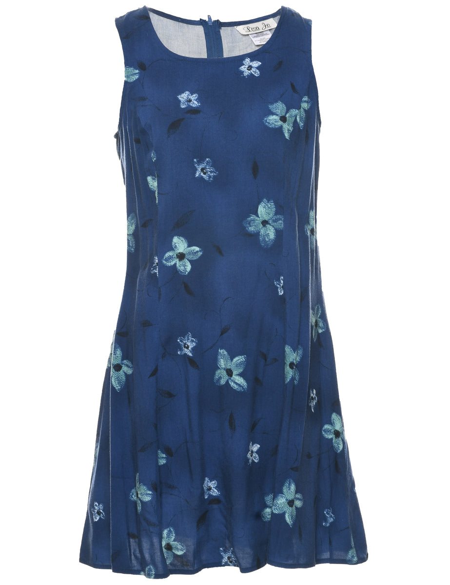 Lisa Jo floral print dress in navy with back tie and a round neck.