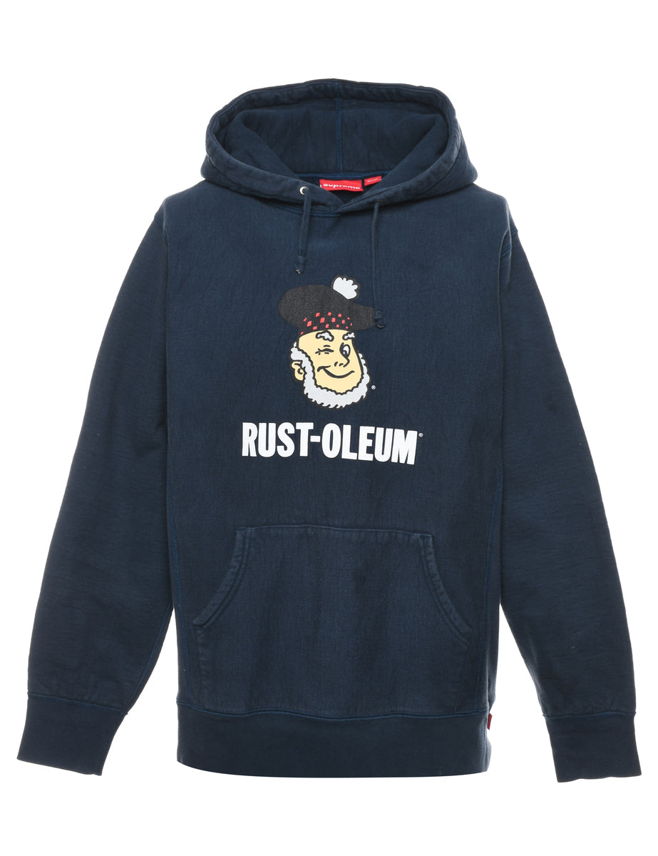 Rust-Oleum printed hoodie. Comes in navy with a pocket.